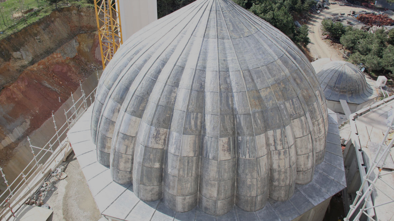 Kurşun kubbe kaplama işlemi, geleneksel bir yöntem olup cami mimarisinde estetik bir dokunuş sağlar.